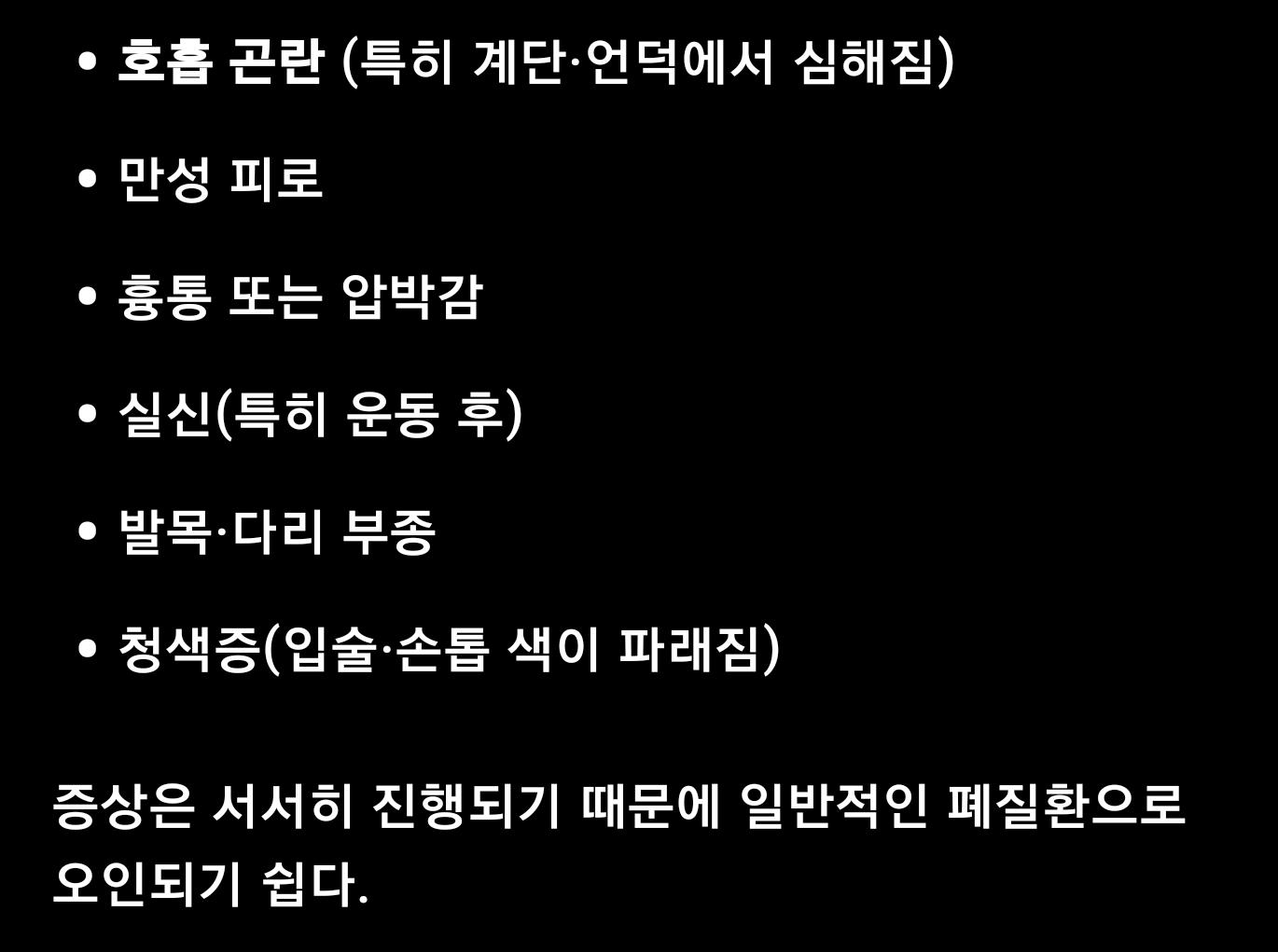 호흡 곤란 (특히 계단·언덕에서 심해짐)
